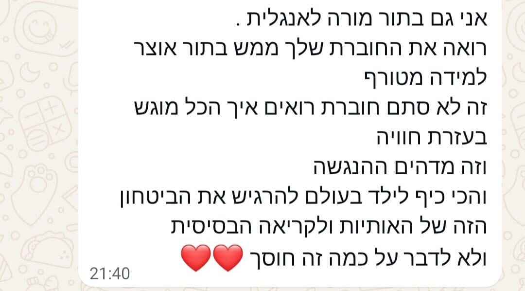 בשנים האחרונות ליוויתי עשרות ילדים שעשו את הצעד הראשון שלהם באנגלית באמצעות הערכה, והיום קוראים בביטחון!